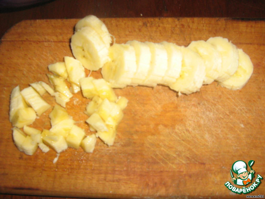Банан очистить от кожуры, разрезать на кусочки