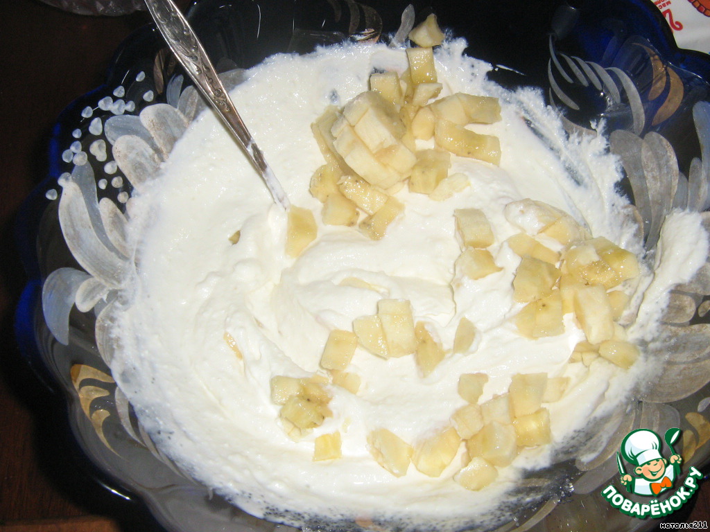 Банан смешать с творогом