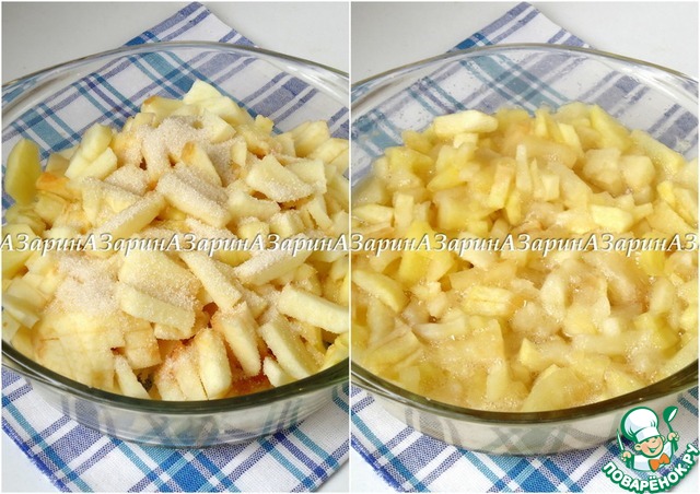 Сложить в кастрюльку, добавить 4 ст. л. сахара и 100 мл воды. Поставить на огонь и потушить.