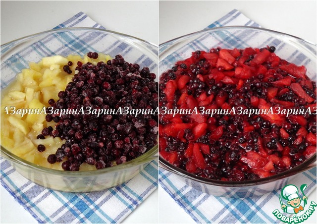 Когда яблоки будут почти готовы, добавить бруснику и ещё немного потушить.