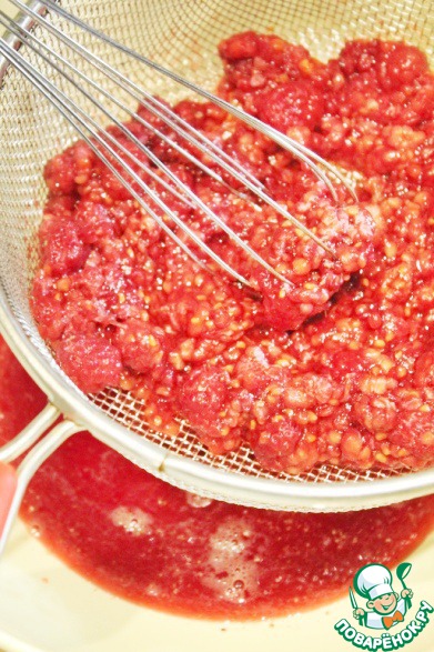 Перетереть через сито, поочерёдно, сначала малину, затем смородину или наоборот )))