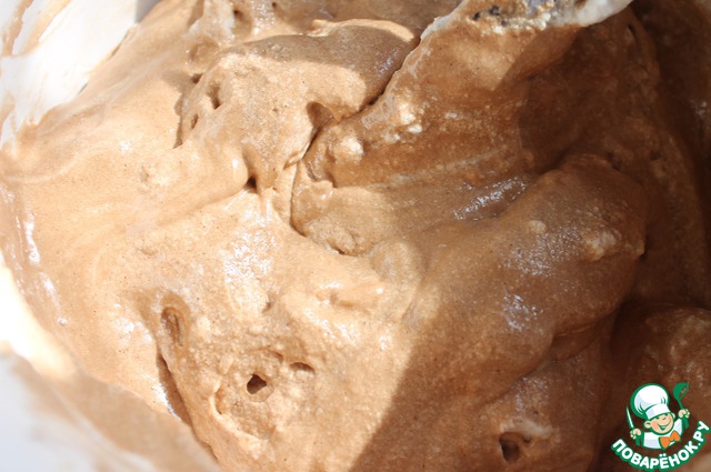 Сначала растопим шоколад 60гр на водяной бане и дадим ему остыть. В это время взбиваем белки (6 шт. примерно) до пиков. Когда они будут хорошо уже взбиты, добавляем постепенно 88гр сахарa.