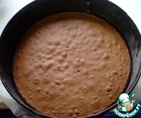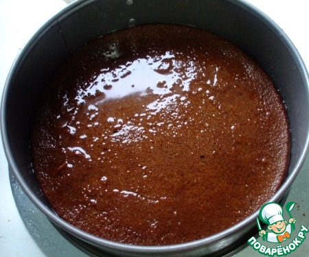 Охлажденный бисквит уложить в разъемную форму, пропитать сиропом. Причем, для того, чтобы лучше пропитывалось нужно –холодный корж –теплый сироп.