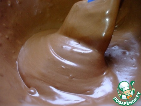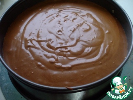 Вылить шоколадный мусс на бисквит. Убрать в холодильник до полного застывания. У меня это заняло минут 30-40.