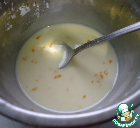 Поместить 33 гр сливочного масла комнатной температуры, 33 гр сахарной пудры, 7 гр ванильного сахара, цедру пол-лимона, щепотку соли в небольшого размера миску.