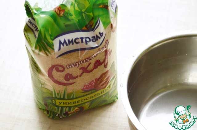4. Затем влить воду. Теперь нужно подождать пока карамель растает.