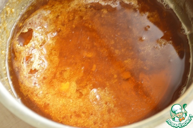 3. Сахар высыпать в сотейник, растопить. Только аккуратно, чтобы не спалить карамель.