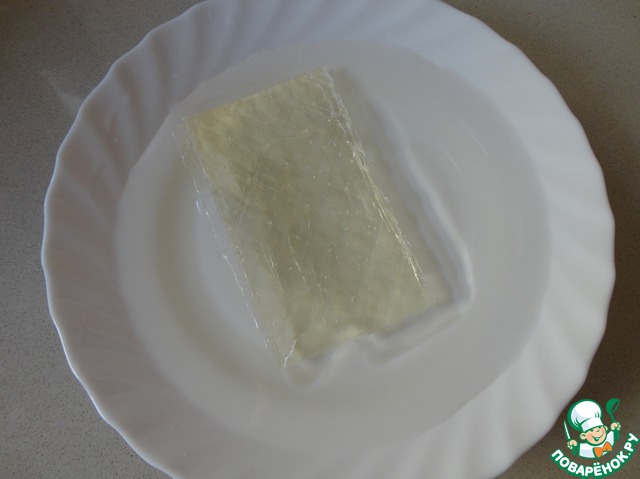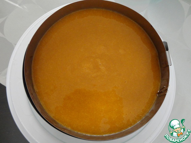 Когда мусс застынет, приступаем к фруктовому желе. 15г желатина замачиваем в холодной воде.