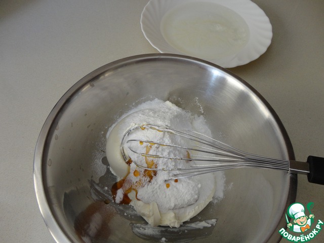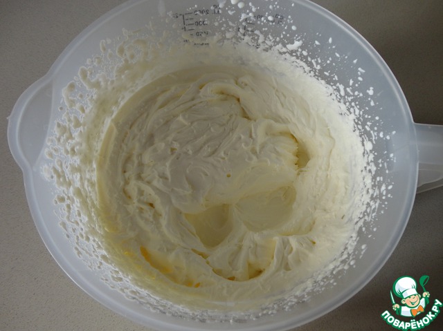 Добавляем маскарпоне с желатином в основную массу с маскарпоне и очень хорошо перемешиваем.