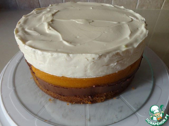 Торт с шоколадным муссом, фруктовым желе и кремом из маскарпоне