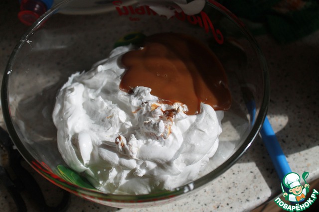 Сделать карамельный сироп. 60 мл. воды + 20 мл вареной сгущенки.