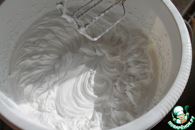 Взбить сливки до пиков. Добавить сахарную пудру. У меня кондитерские сливки, они уже идут сладкими.