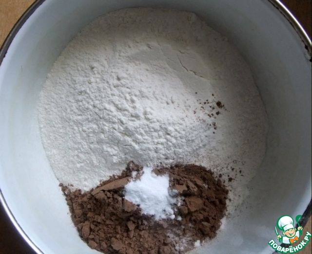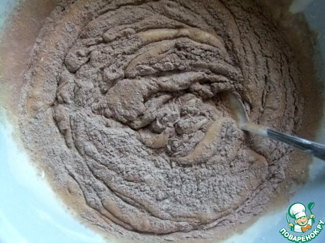 Всыпать мучную смесь во взбитую массу и замесить тесто.