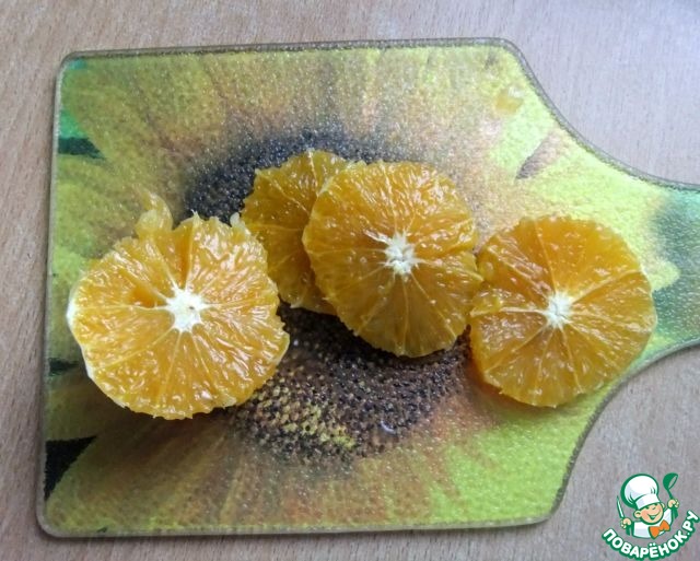 Апельсины очистить, порезать кружочками, попутно удаляя косточки. Сложить в дуршлаг, чтобы стек сок.