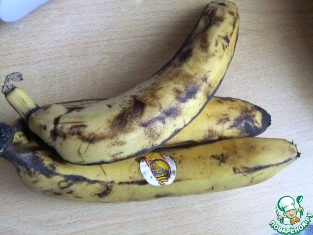 Пока верхний слой застывает, готовим шоколадно-банановый крем. Очень спелые бананы очистить и превратить в пюре.
