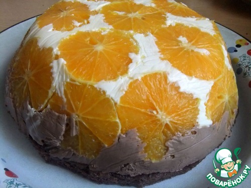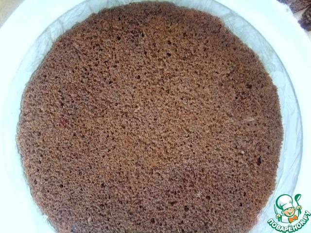 Аккуратно уложить бисквит на полузастывший шоколадный слой. Слегка придавить, чтобы он плотно прилип к желе. Поставить в холодильник для окончательного застывания, желательно на ночь.