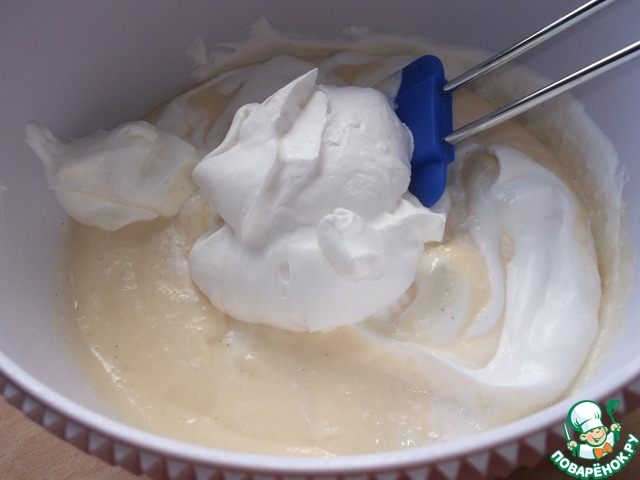 Добавить жидкую нугу в тесто, аккуратно перемешать.