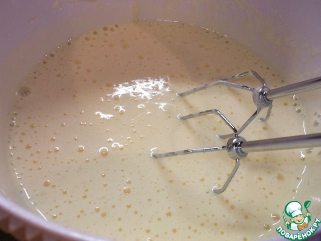 4 яйца и 120 г сахара взбить 5 минут до густого состояния