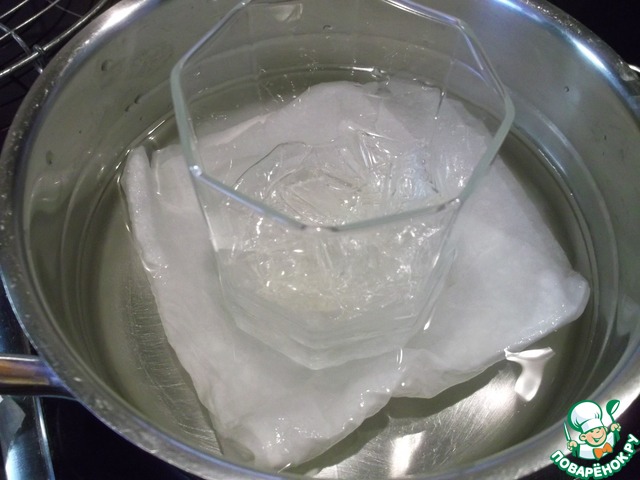 Тем временем замачиваем желатин в холодной кипячённой воде - примерно на 10 минут.