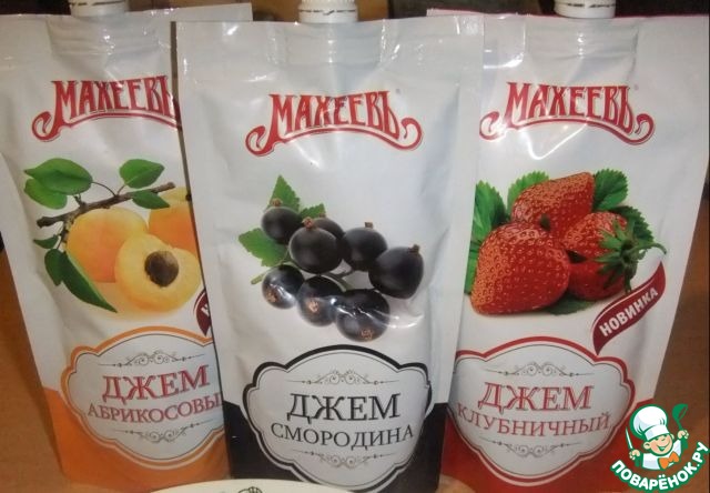 Приготовить три вида джема ТМ"МахеевЪ". Абрикосовый джем можно заменить облепиховым, клубничный - малиновым, а смородиновый - черничным.