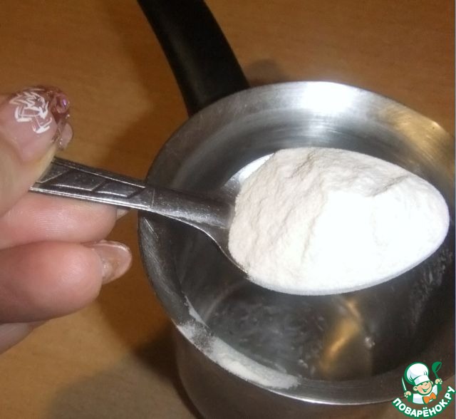 Насыпать в ковшик 3 ч. лож. с горкой агар-агара, залить водой и оставить на час.