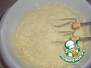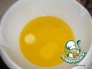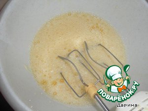 Добавить яйца и очень хорошо взбить миксером, чтоб пенка была сверху.