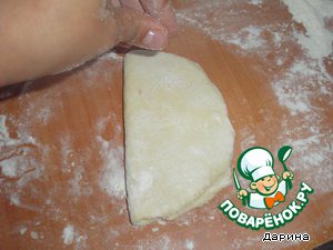 Я отщипывала по кусочку, раскатывала вот в такую лепешечку.
