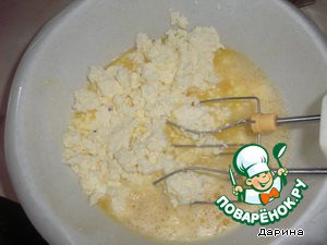 Добавить творог,соль,ванилин.