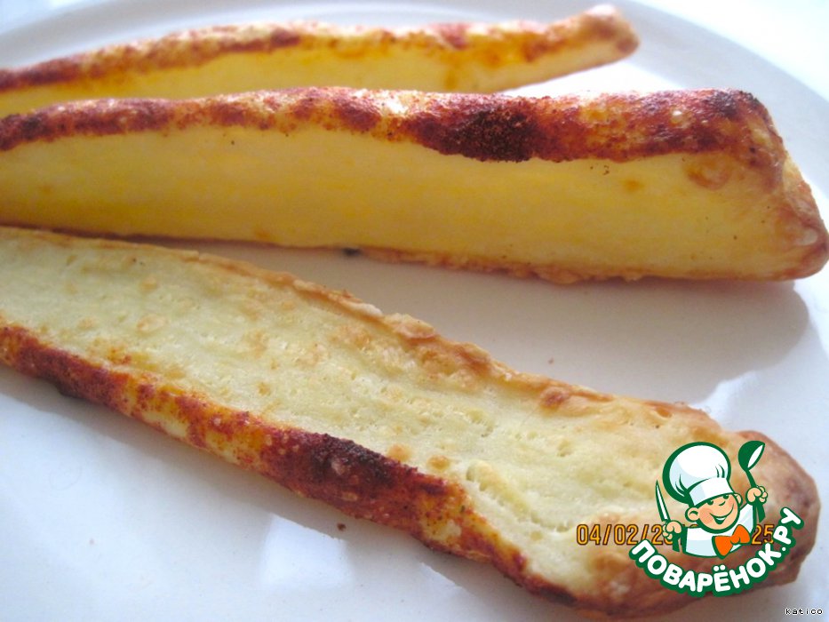 Посыпаю паприкой, режу на тонкие полоски, выкладываю на противень и выпекаю в предварительно прогретой духовке до 180-200 град 15 мин. Противень можно не смазывать. И лучше не на силиконовом коврике. В процессе приготовления печенье должно очень сильно вырасти вверх.