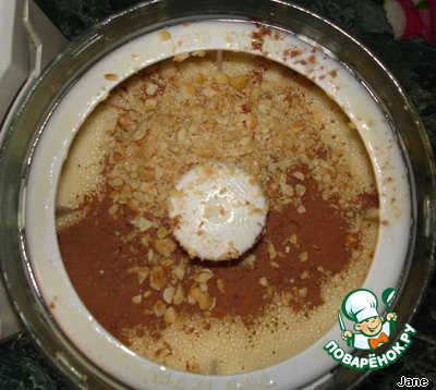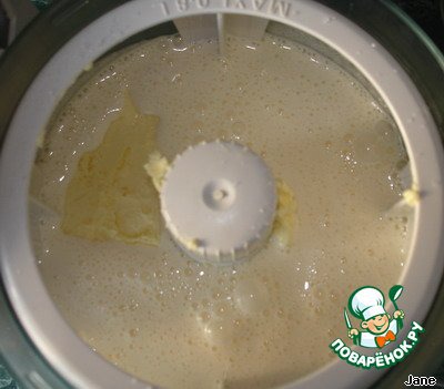 Пока выпекается корж, сделать крем. Хорошо вымешать (взбить) до однородной массы масло, творог и сгущенку.