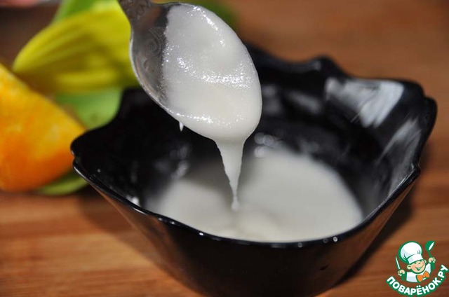 По каплям добавляем апельсиновый сок, перемешиваем.