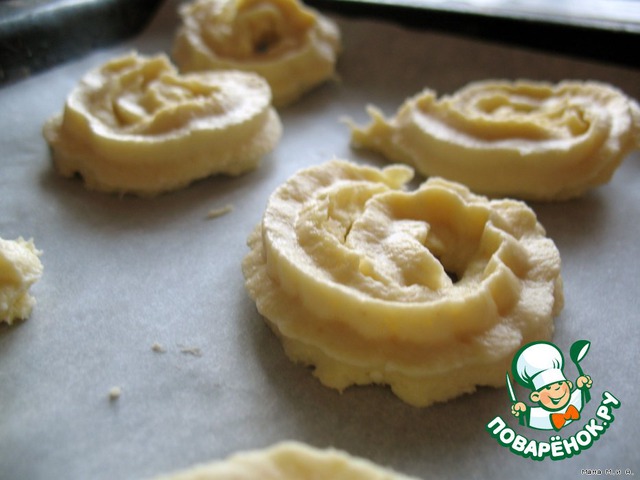 В моей мясорубке есть функция выдавливания фигурного печенья – я сделала розочки.