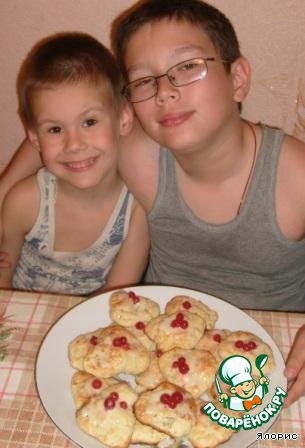 Румяные печеники мы украсили растопленным белым шоколадом и добавили немного кислинки и яркости смородинкой. Это не шедевр (нам не угнаться за мастерицами!!!) Но это вкусно и нежно. Малышне нравится!