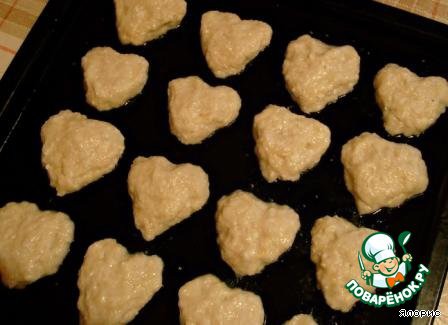 Формируем лепешечку в виде фигурки, у нас это сердечки. Тесто не очень форму держит из-за слишком сочного творога и задуманной красоты не получилось. Но получиласт вкуснота!!!