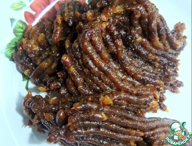 Чернослив замочить в горячей воде на 20 минут. Слить воду и пропустить его через мясорубку.