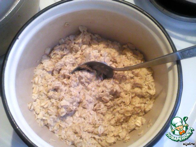 Залить хлопья горячим молоком, перемешать и оставить набухнуть.