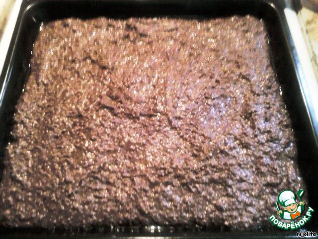 Все слегка взбить и вылить на смазанный противень. Печем при t-180 минут 30-40.