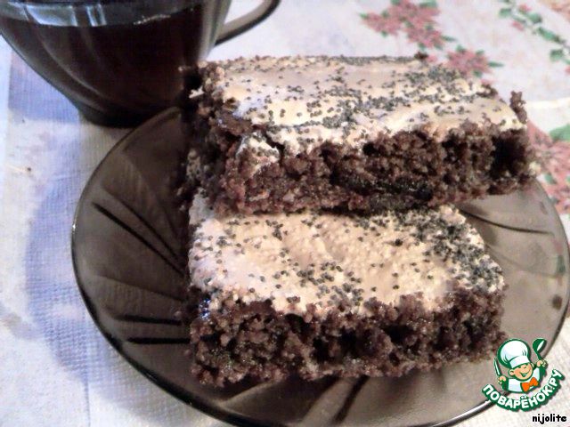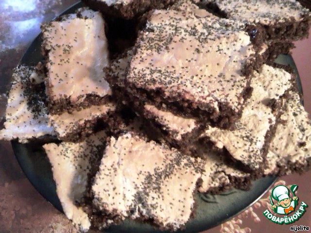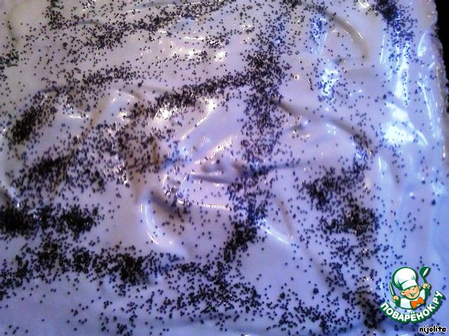 Я сегодня взбила два белка с сахарной пудрой, обмазала готовый корж, посыпала сверху немного маком и поставила в духовку ещё на пару минут.