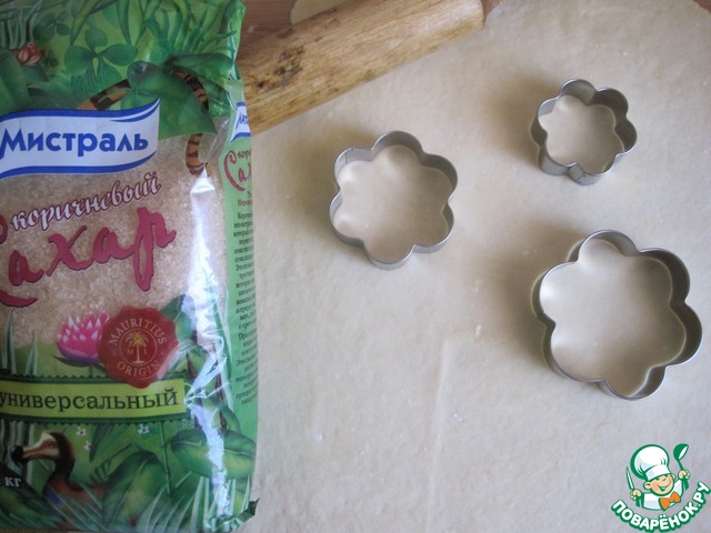 Каждую заготовку одной стороной окунём в тростниковый сахар.