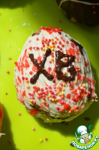 Для того чтобы печенье имело форму яйца, нужно использовать пластиковую формочку от киндер сюрприза (или постараться вылепить форму яйца руками)