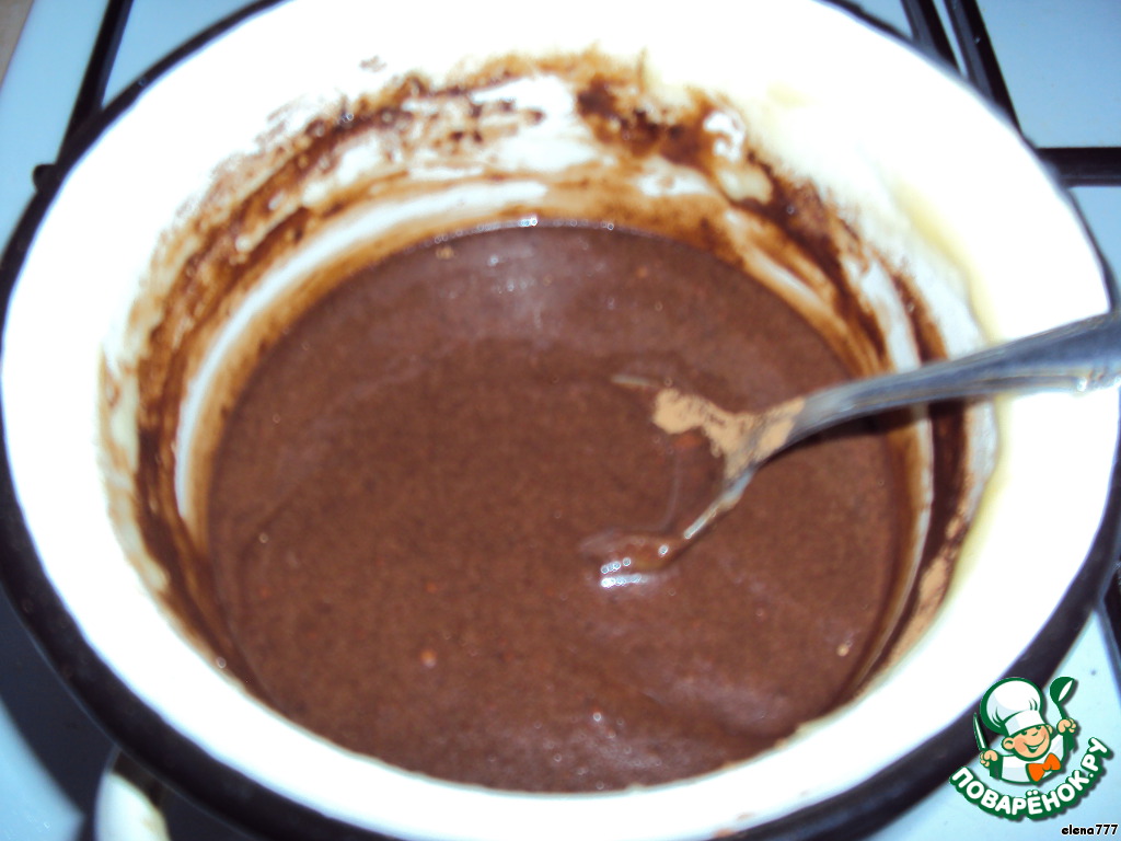 Из оставшейся помадки готовим глазурь: в помадку влить 100 мл молока, всыпать какао, тщательно размешать и довести до кипения.