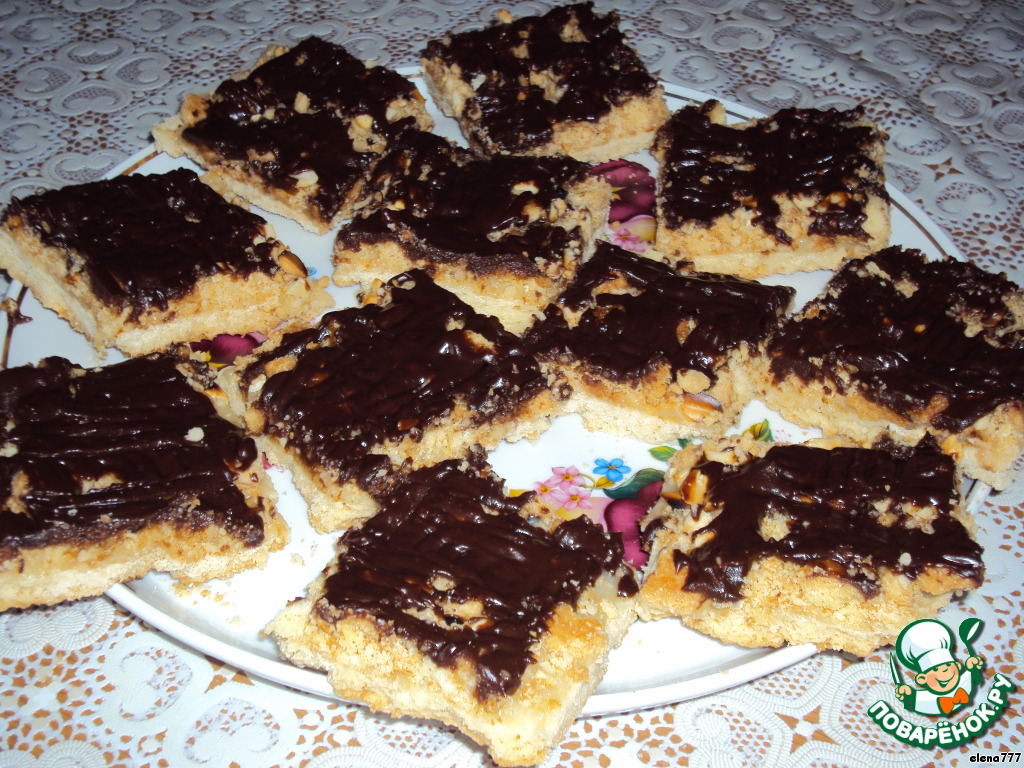 | Вкусненькое, ароматное, хрустящее печенье с обжаренным арахисом, с прослоечкой из крем-помадки, облитое шоколадной глазурью. Вкусом напоминает шоколад "Сникерс". Очень нравится взрослым и детям. Легко и быстро готовится! |
