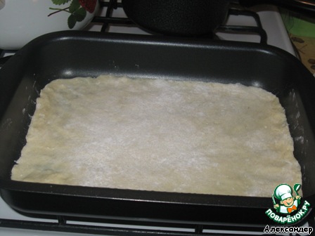 Делим тесто на три части. Две отправляем в холодильник, а одну раскатываем и укладываем в форму.