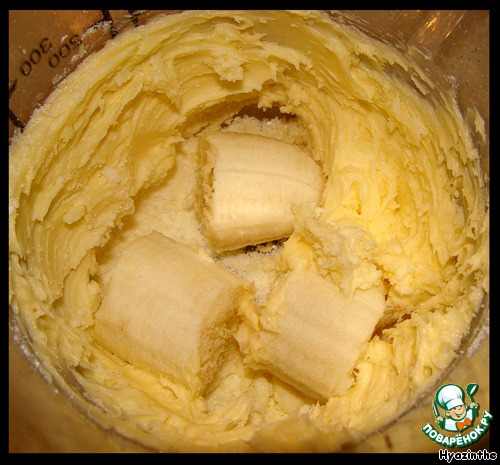 Мягкий маргарин, ароматизатор и 80 гр сахарной пудры взбить до кремообразной консистенции.