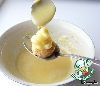 Для глазури я растопила на водяной бане белый шоколад, и добавила в него чуть-чуть (1-2 ч.л.) молока, можно воды.