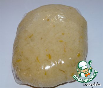 Муку смешать с сахаром и цедрой лимона, добавить масло, лимонный сок, желток, замесить тесто, завернуть в пищевую плёнку, и убрать в холодильник на 30 минут.