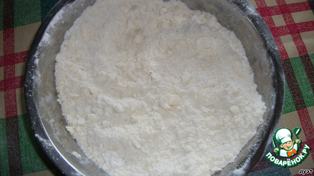 Муку 3 стакана и маргарин 250 гр рубим в мелкую крошку. Я растираю руками.