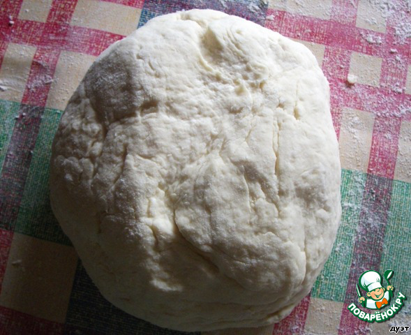 Тесто не должно быть крутым и будет липнуть к рукам. Обваливаем его в муке и убираем в холод на 30 мин, прикрыв плёнкой.