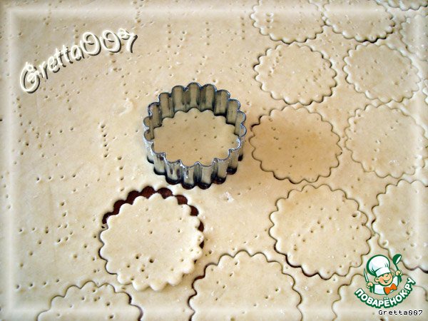 Вырезать печенья формочкой в виде цветка диаметром около 3 см.