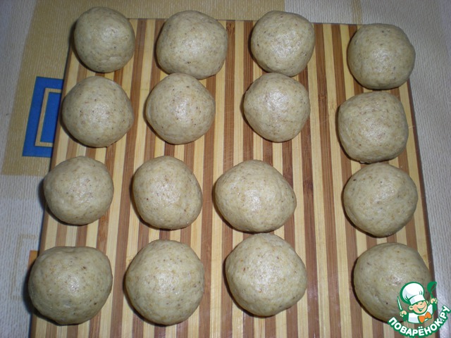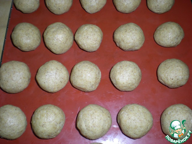 Разделить тесто на равные части размером с крупный грецкий орех. Скатать из этих кусочков шарики и поставить в холодильник на 30 минут.